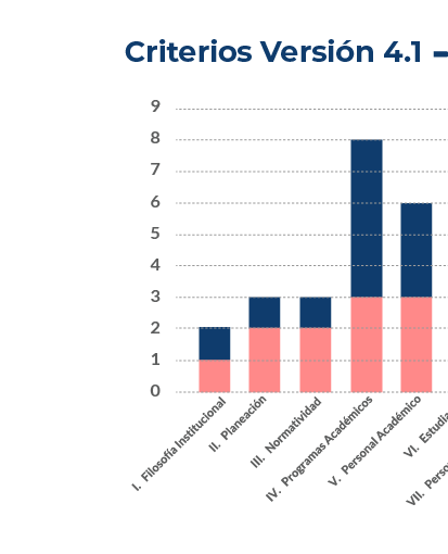 El Sistema de Acreditación V-4.1 sostiene que cada institución tiene que ser evaluada de acuerdo a su propia Misión y de acuerdo a sus características particulares y situaciones específicas; sin embargo, nuestra Visión de un modelo que pueda permanecer en el tiempo, y ayudar a todas las instituciones a encontrar su verdadera alineación se articula en la rúbrica e incluye la expectativa de que las instituciones busquen resultados importantes para toda institución de Educación Superior: